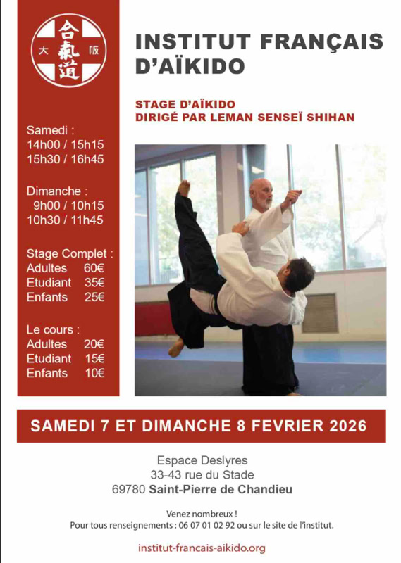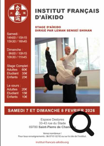Stage d’aïkido à Lyon Croix Rousse le samedi 28 février et dimanche 1 mars 2026 animé par Etienne Leman Senseï :