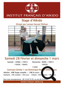 Stage d’aïkido à Lyon Croix Rousse le samedi 28 février et dimanche 1 mars 2026 animé par Etienne Leman Senseï :